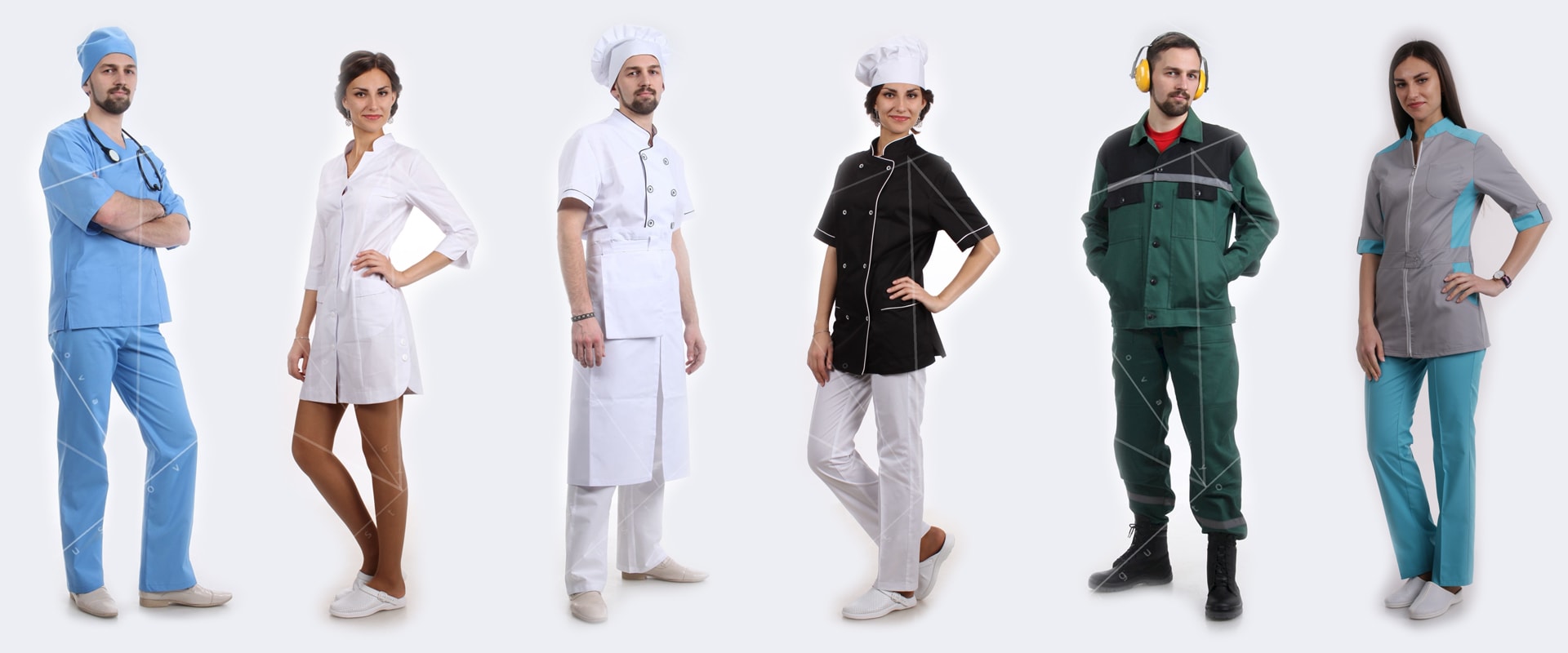 Собственное производство медицинской одежды, поварской, для обслуживающего персонала, для строительных специальностей